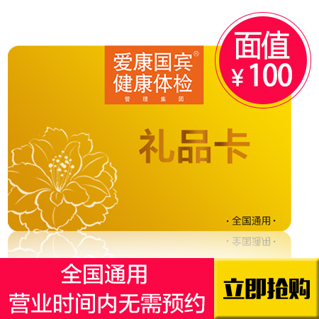 爱康国宾健康礼品卡100元 (男女通用无需预约,限做自选单项)全...